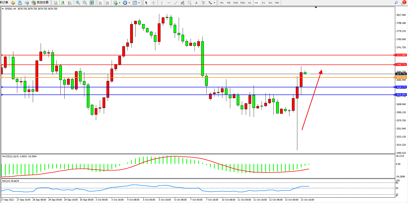 标普500指数10月13日(周四)收盘上涨92.47点,涨幅2.59%,报3669.50点;美国9月未季调核心CPI年率 6.6%,为1982年8月以来最高。
