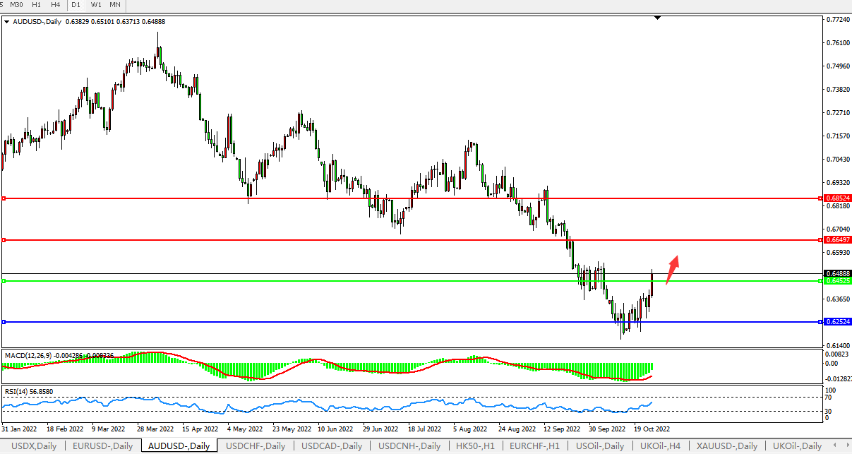 交易策略:0.6450上方看涨,目标0.6650、0.6850