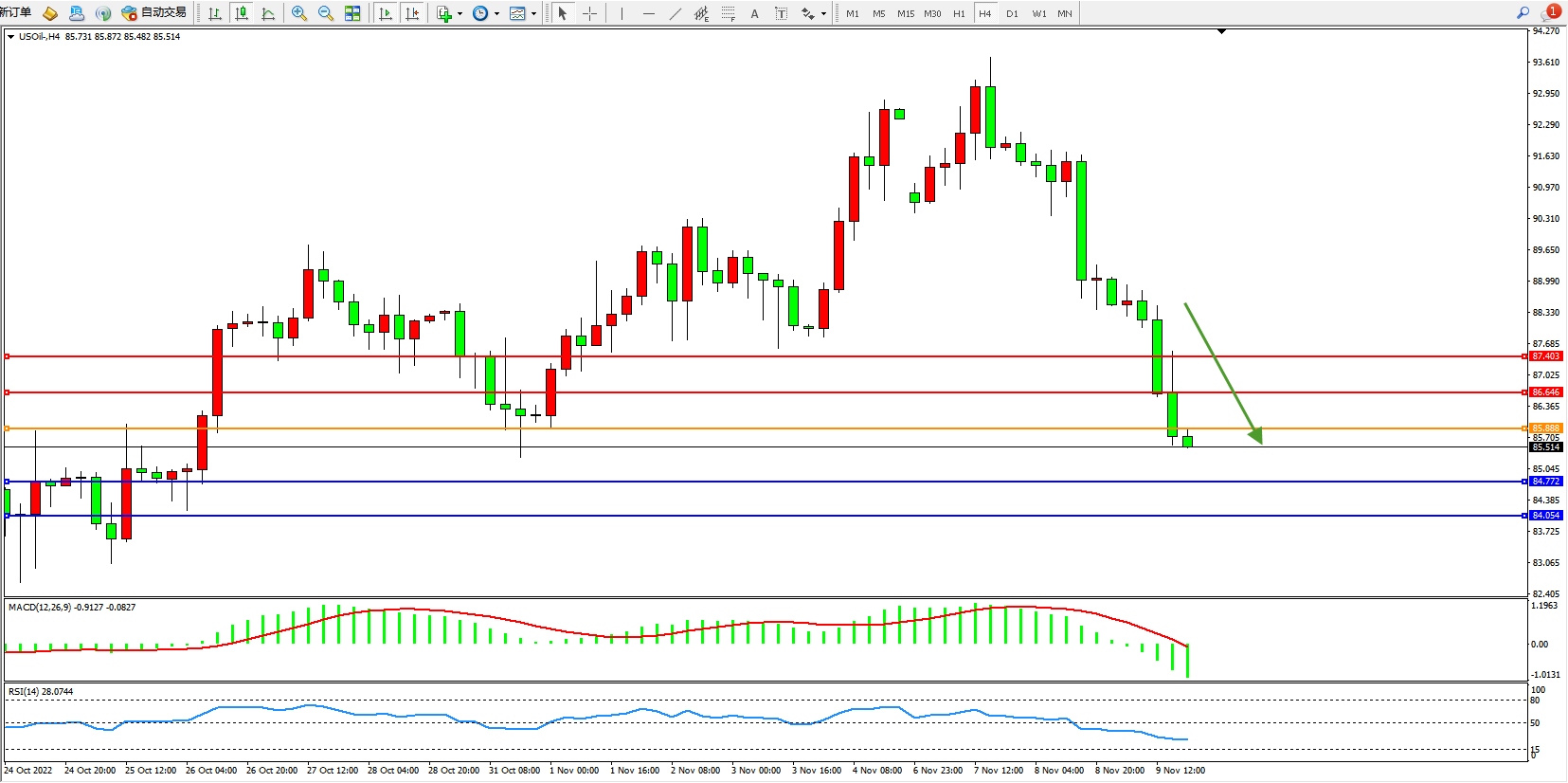 原油维持85.519附近震荡,美国至11月4日当周EIA原油库存 392.5万桶,预期136万桶,前值-311.5万桶。EIA数据公布后,美、布两油短线暂时波动不大。美国至11月4日当周国内原油产量增幅录得2022年7月22日当周以来最大。