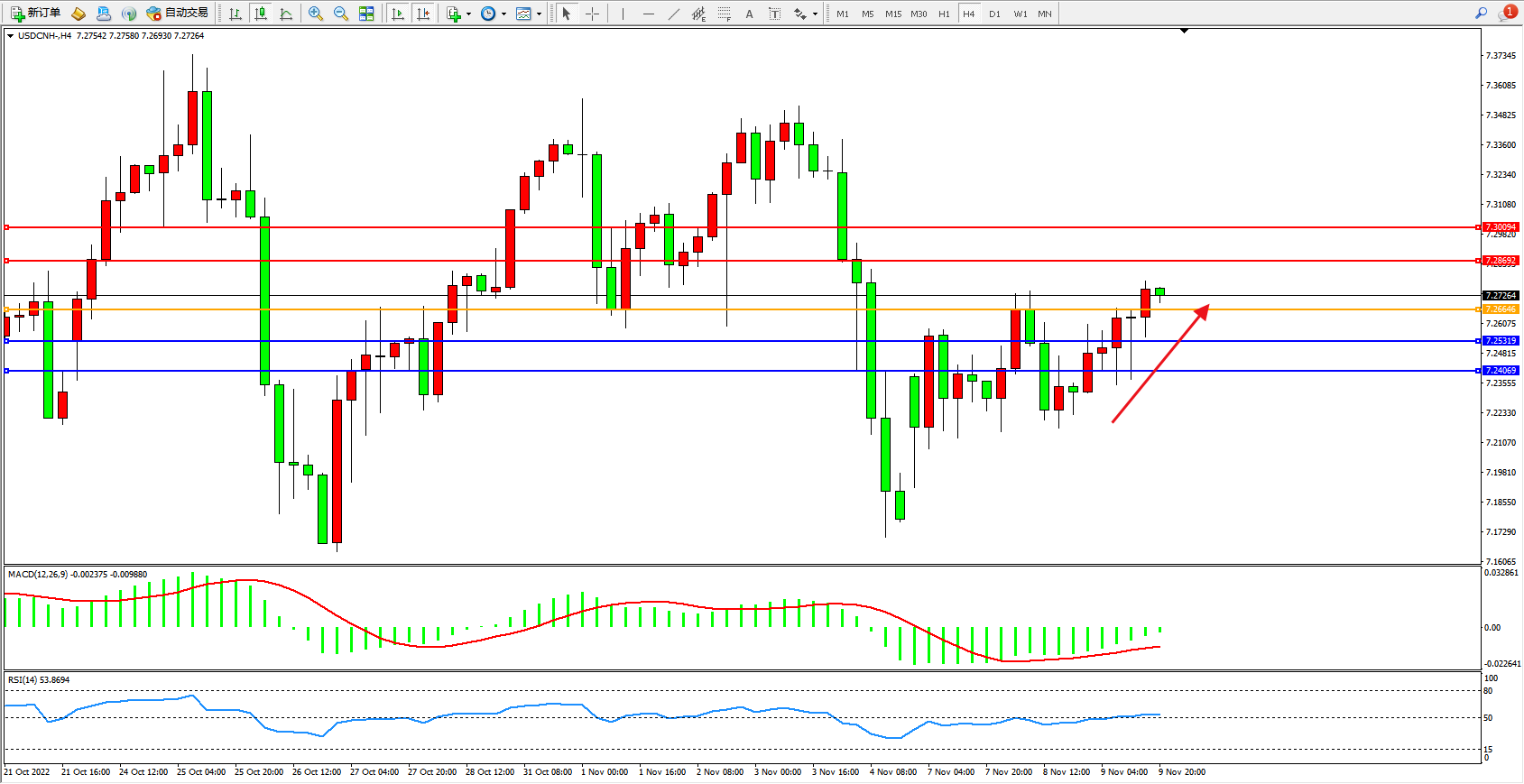 美元兑人民币维持7.27266附近震荡,中国CPI同比增速放缓,主要消费品价格同比和环比均是“涨多跌少”,通胀压力较9月大幅减轻。国内通胀料继续保持整体稳定状态,虽然猪周期上行对CPI有一定拉动,但核心CPI持续下行,通胀压力较小。