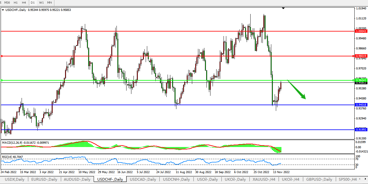 交易策略:0.9600下方看跌,目标0.9400、0.9200