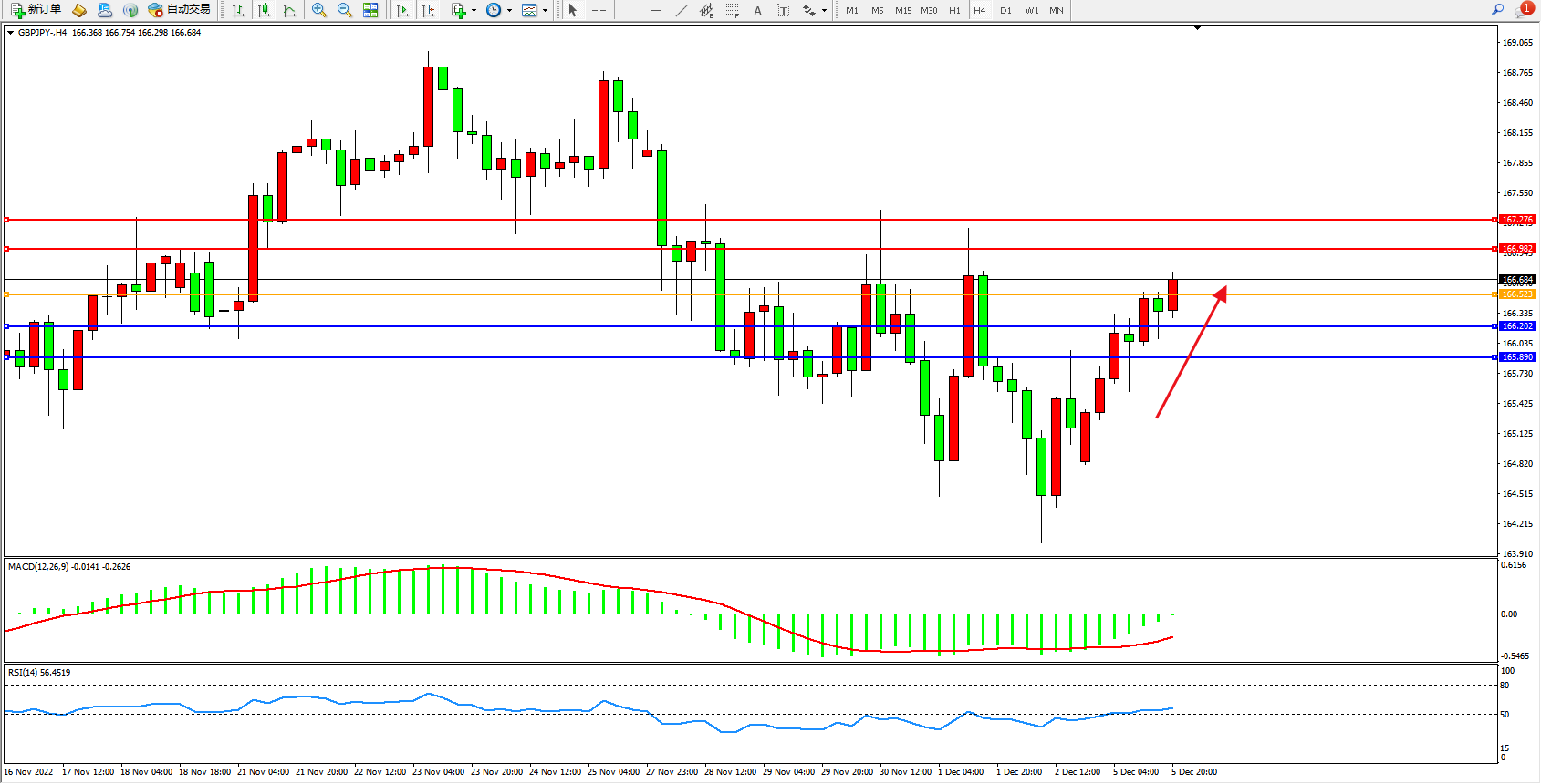 英镑兑日圆维持166.684附近震荡,由于通胀居高不下,企业搁置投资,英国经济明年将可能萎缩0.4%,对长期增长造成负面影响。