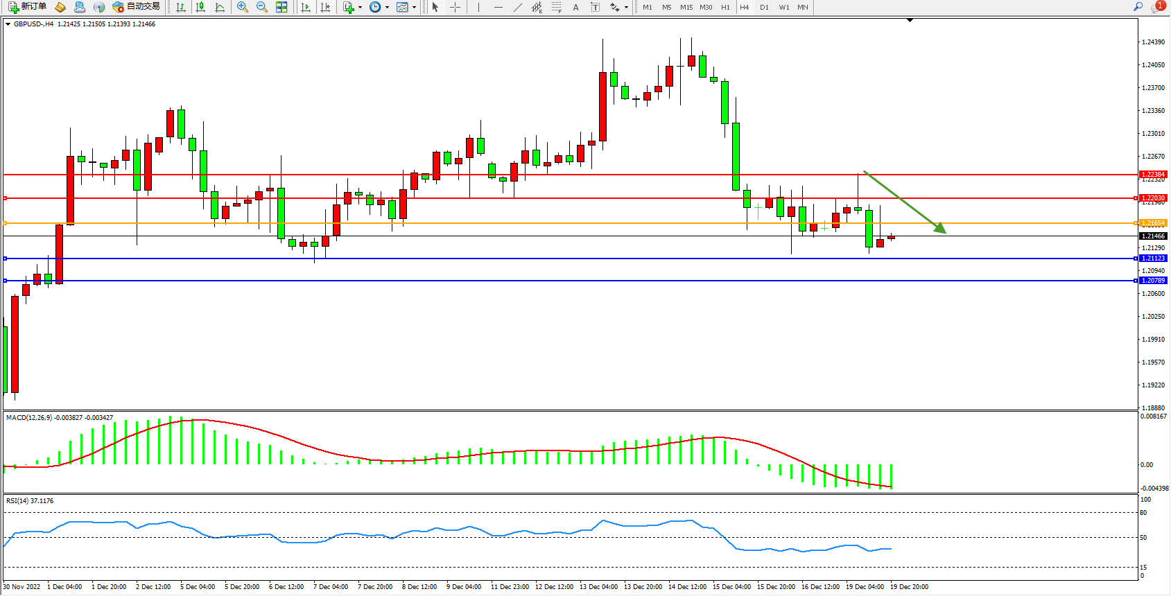 交易策略:1.21654下方看跌,目标1.21123、1.20789