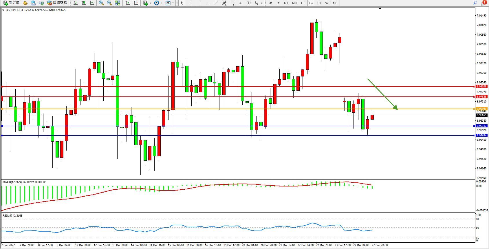 备选策略:6.96946上方看涨,目标6.97536、6.98028