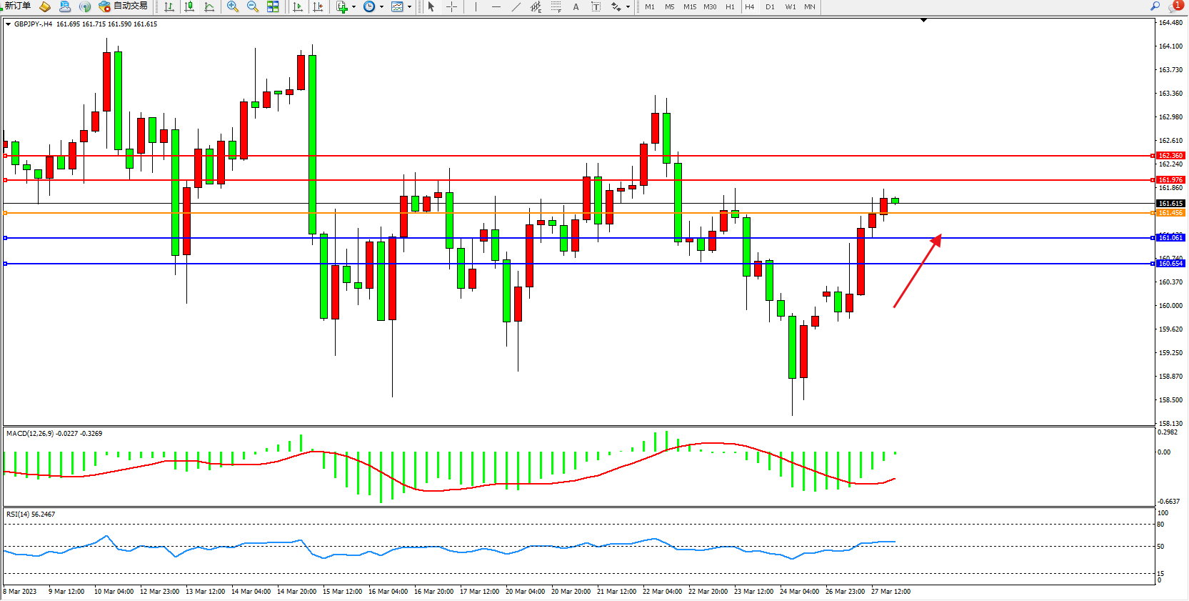 交易策略:161.456上方看涨,目标161.976 162.360