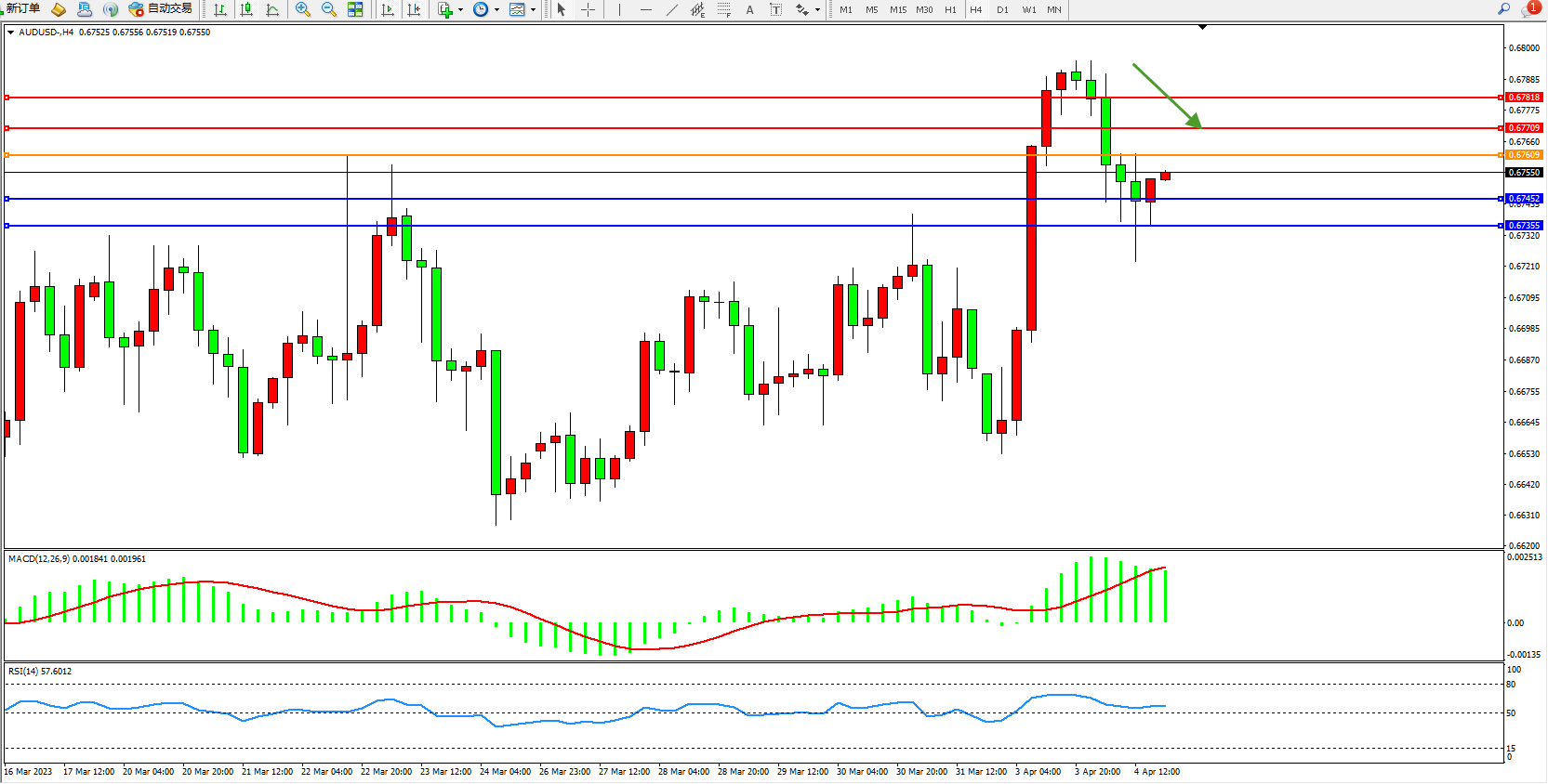 阻力位:0.67709 0.67818