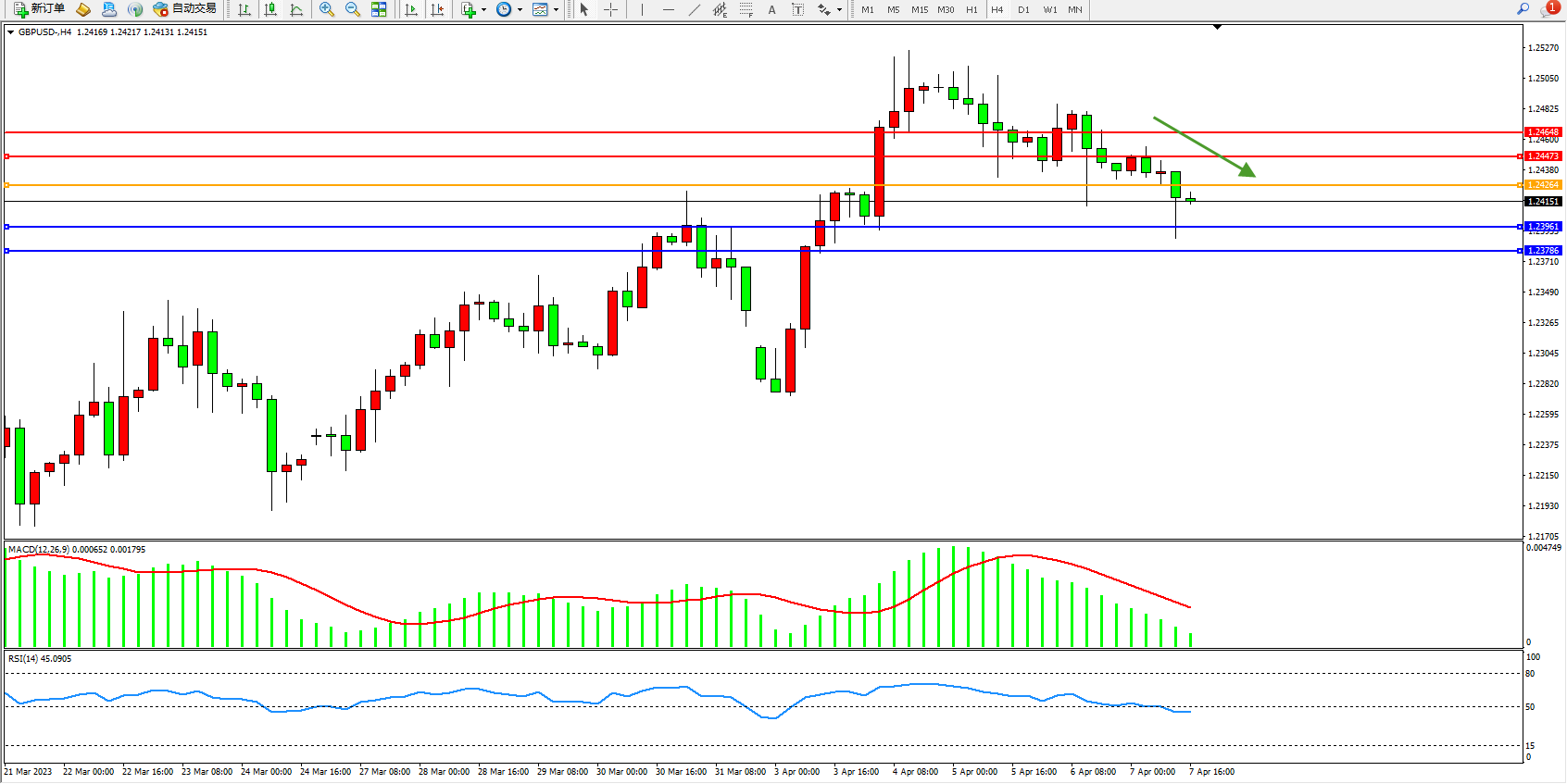 英镑美元GBPUSD ——4小时K线图显示: