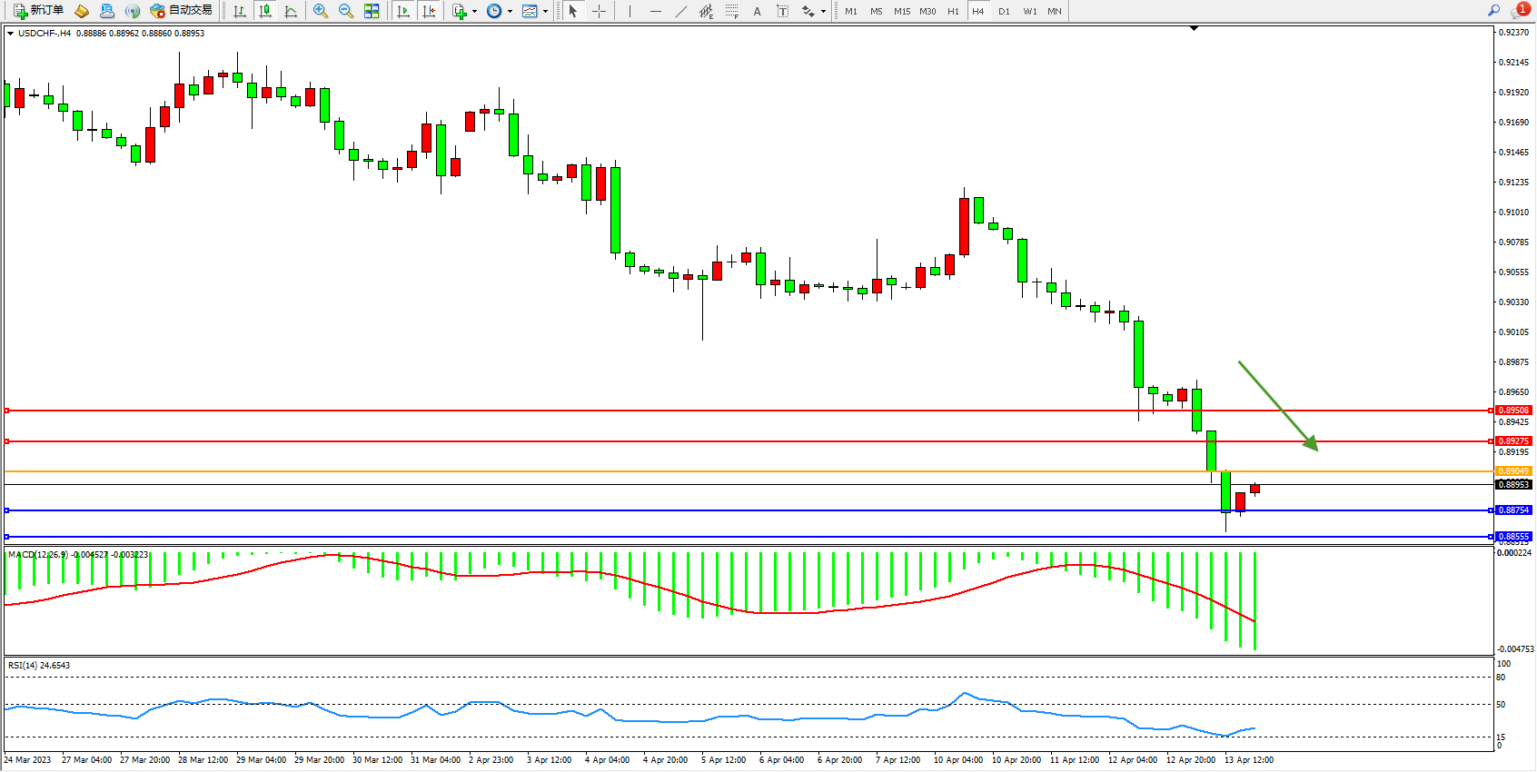 交易策略:0.89049下方看跌,目标0.88754  0.88555