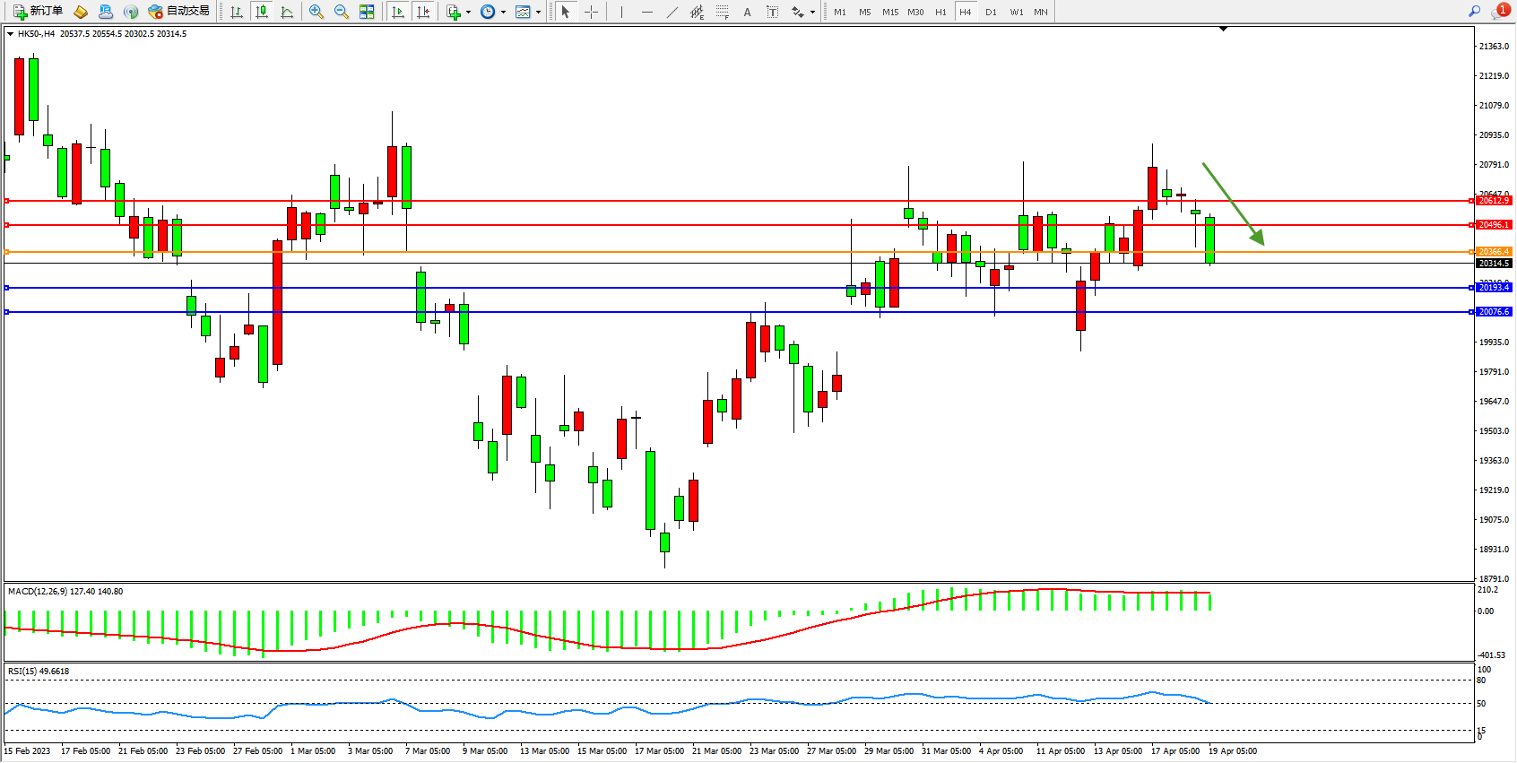 香港恒生指数4月19日(周三)收盘下跌282.75点,跌幅1.37%,报20367.76点;港股再度表现低迷,恒生科技指数午后一度大跌2.8%,收跌2.39%,恒指、国指分别跌1.37%和1.63%,恒指下挫近300点。大型科技股全线下跌,大湾区航空推出“香港至台北飞行优惠套票”,由即日起至5月10日,乘客可以最低1890港元购买3套香港至台北来回机票,仅限同一人使用。南下资金全日净流入45.32亿港元,大市成交额缩量至不足千亿港元。