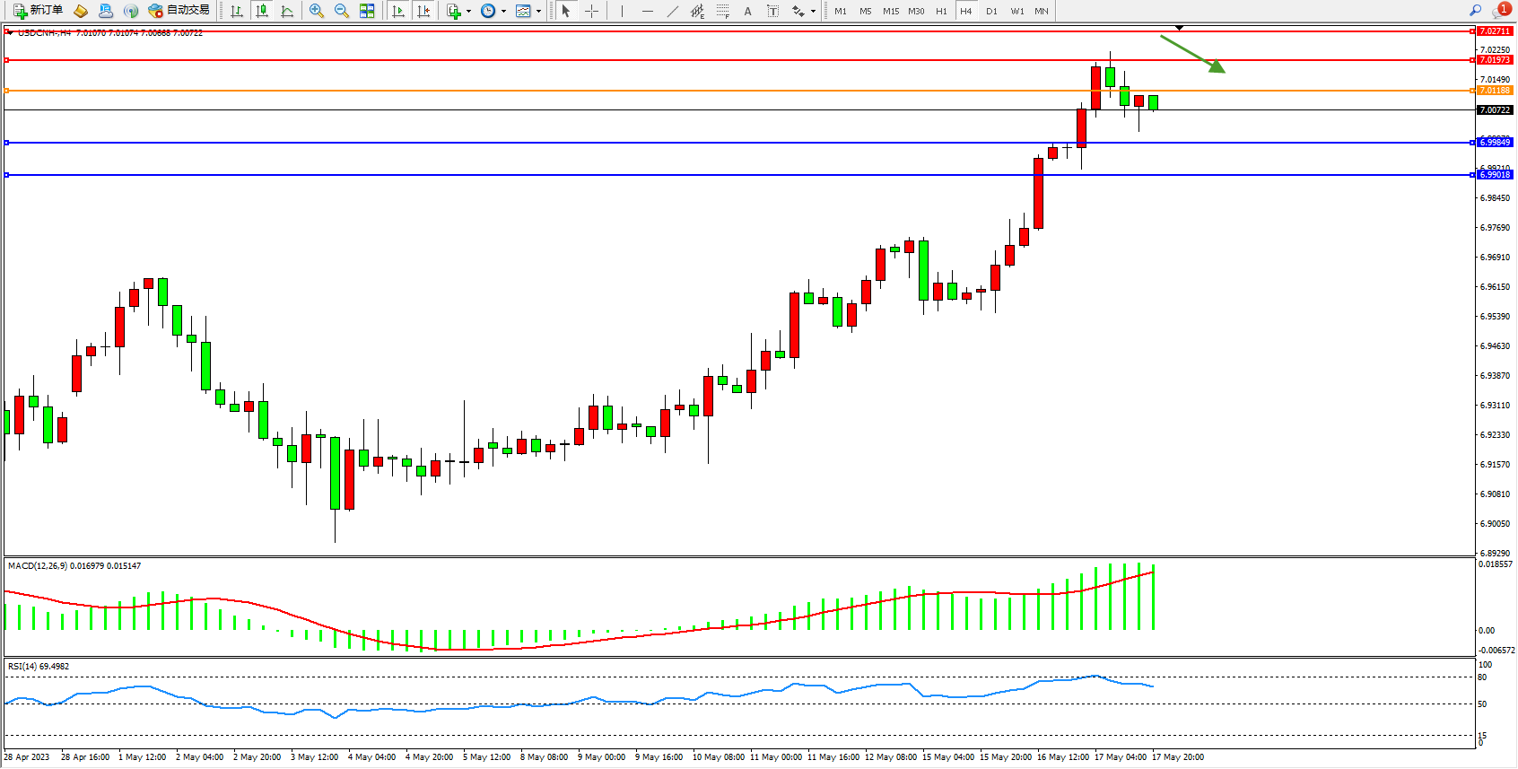 支撑位:6.99849  6.99018