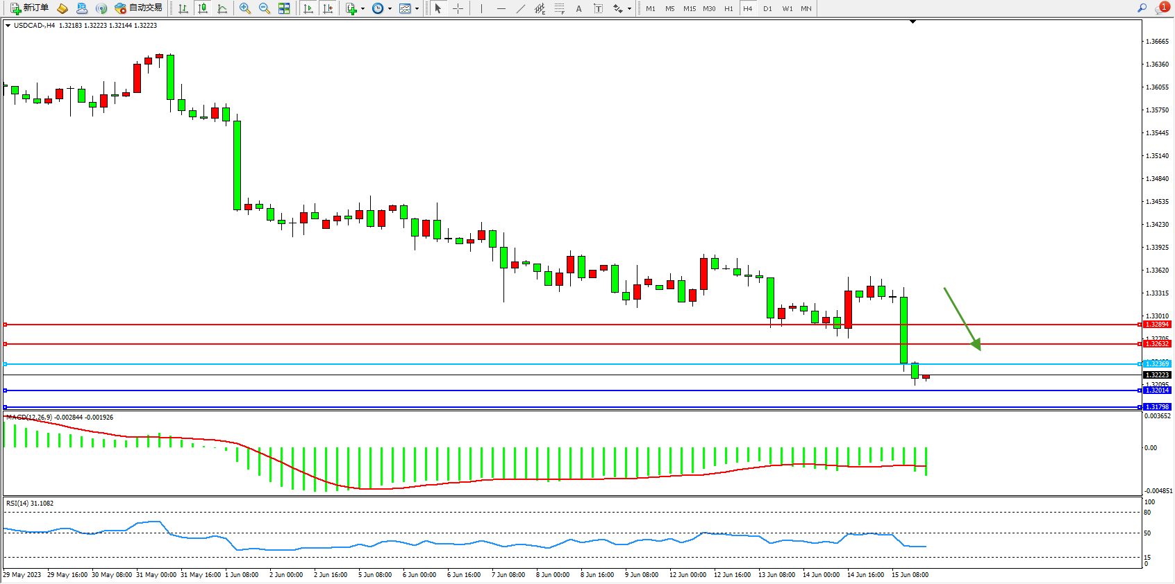 4小时图看:空头动力维持震荡持续下移,短期跌势有继续向下移动态势,MACD指标处于空头区域低位震荡,RSI指标处于空头区域维持整理;