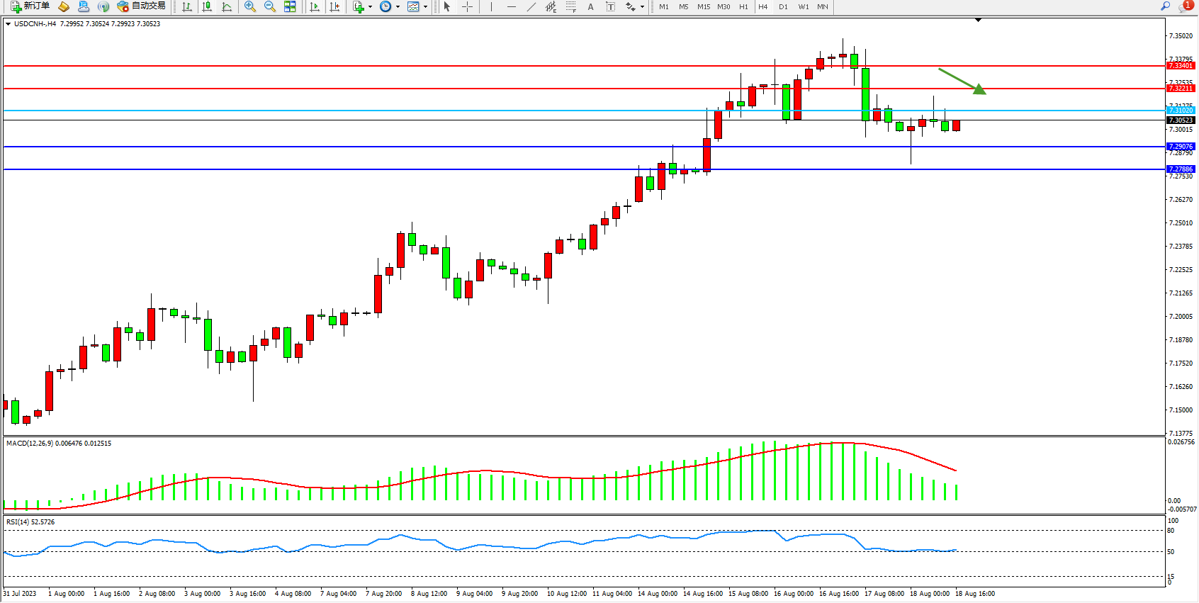 备选策略:7.31020上方看涨,目标7.32211  7.33401