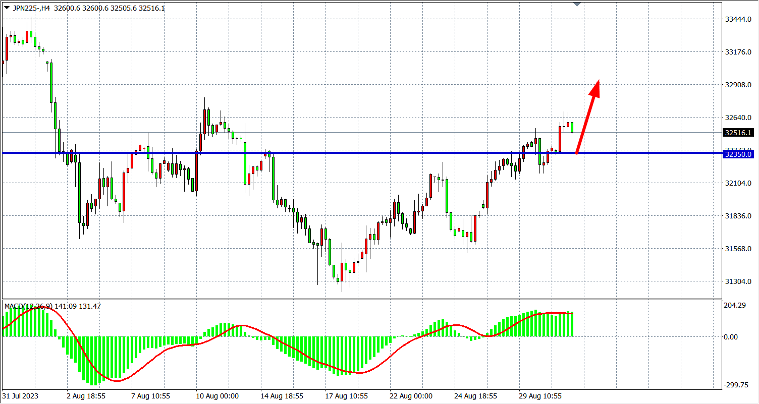 周四(8月31日)日经225指数收盘上涨240.00点,涨幅0.74%