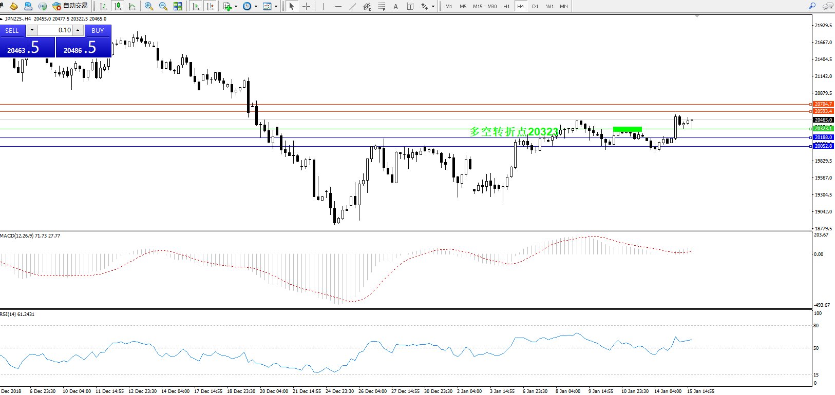 技术点评:高位上冲后整理,MACD指标0轴上方上扬,RSI指标多头区域上冲中;
