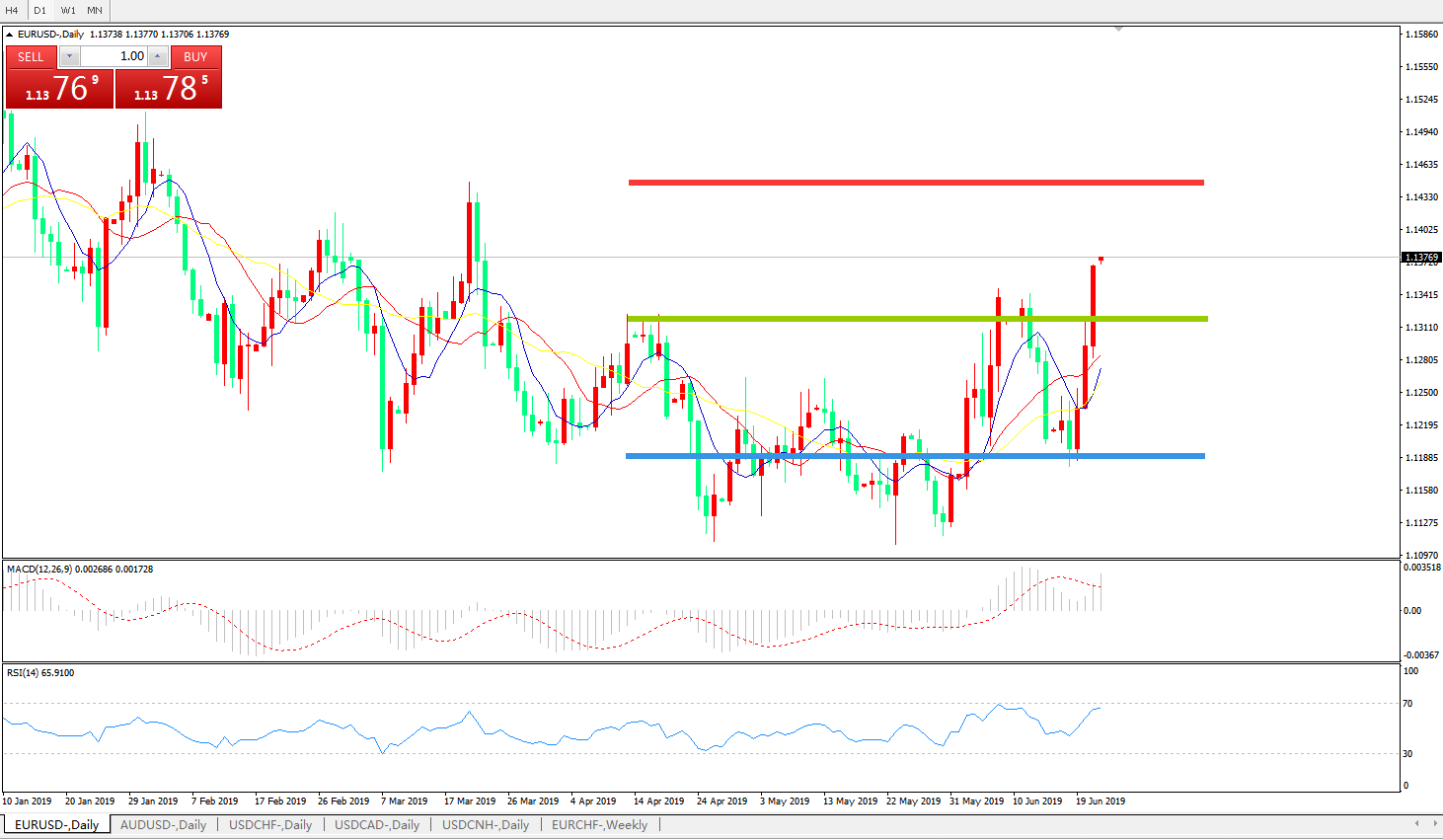 周五(6月21日)纽市盘中,美元大幅走低,美元指数创3月22日以来新低至96.20,自美联储周三暗示可能在今年晚些时候降息以来美元连续受挫,日内公布的美国制造业数据不及预期也打压了美元;欧元兑美元涨幅一度扩大到0.68%,刷新近三个月来高点至1.1370;美元走软带动了欧元,法国和德国企业活动数据强于预期,也提振欧元。