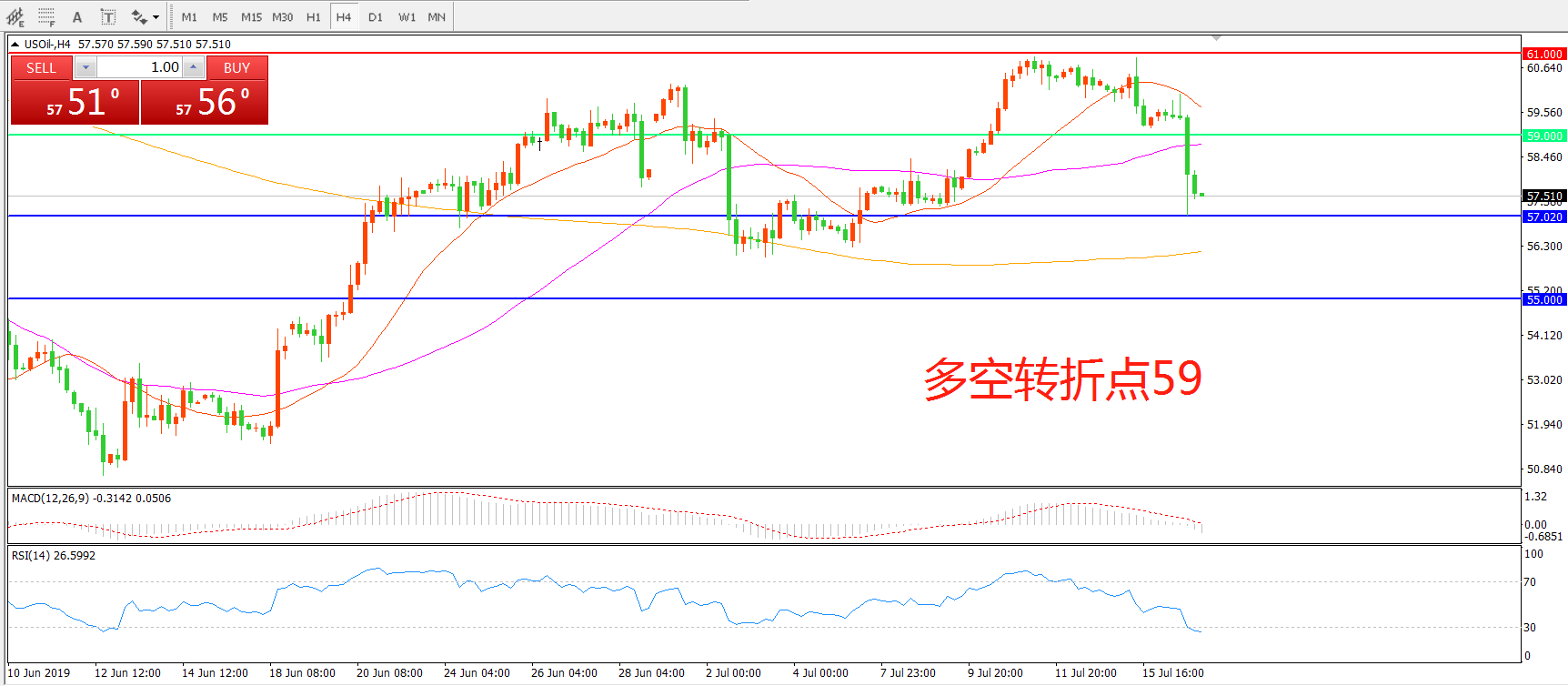 交易策略:在59.00之下看跌,目标57.00 55.00
