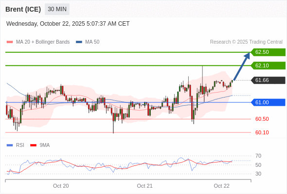 在 61.00 之上,看涨,目标价位为 62.10 ,然后为 62.50 。