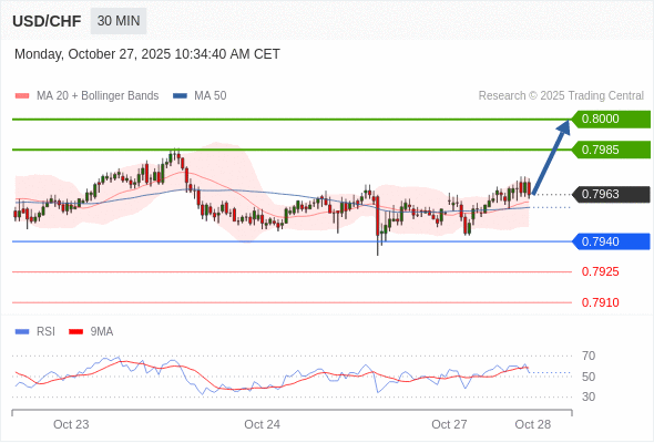 在 0.7940 之上,看涨,目标价位为 0.7985 ,然后为 0.8000 。