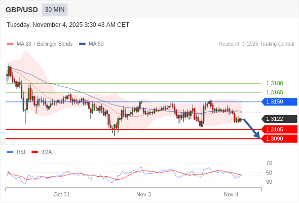 交易策略: 在 1.3150 之下,看跌,目标价位为 1.3105 ,然后为 1.3090 。
