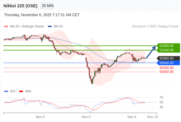 在 50640.00 之上,看涨,目标价位为 51540.00 ,然后为 51850.00 。