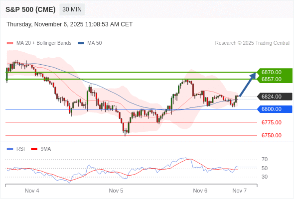 在 6800.00 之上,看涨,目标价位为 6857.00 ,然后为 6870.00 。