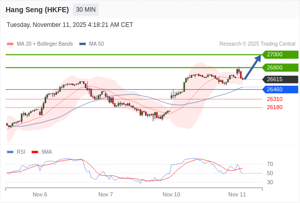 在 26460 之上,看涨,目标价位为 26800 ,然后为 27000 。
