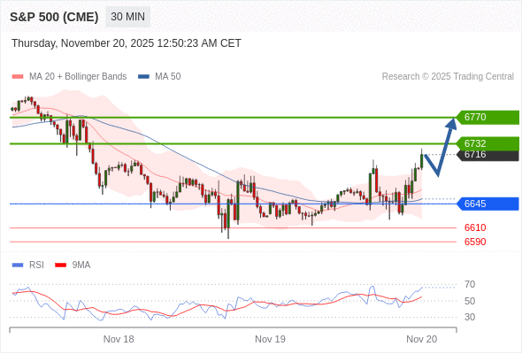 交易策略: 在 6645 之上,看涨,目标价位为 6732 ,然后为 6770 。