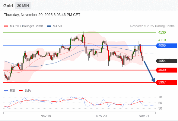 在 4095 之下,看跌,目标价位为 4030 ,然后为 3997 。