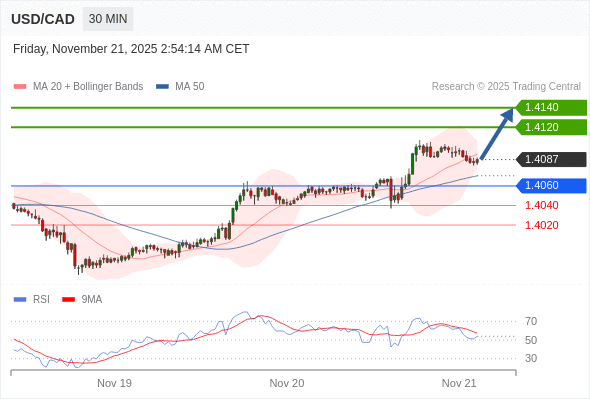 在 1.4060 之上,看涨,目标价位为 1.4120 ,然后为 1.4140 。