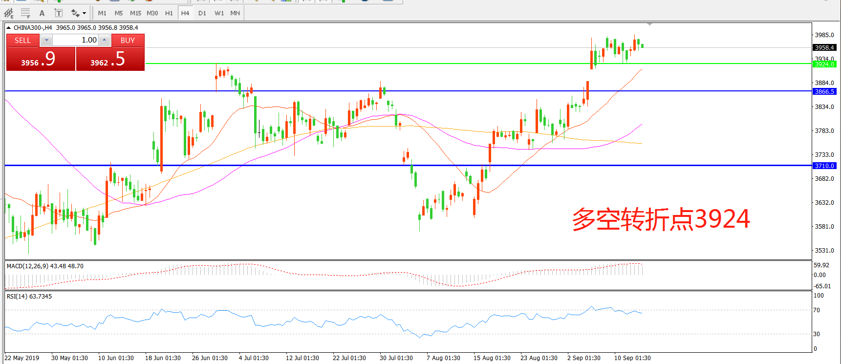 多空转折点:3924.00