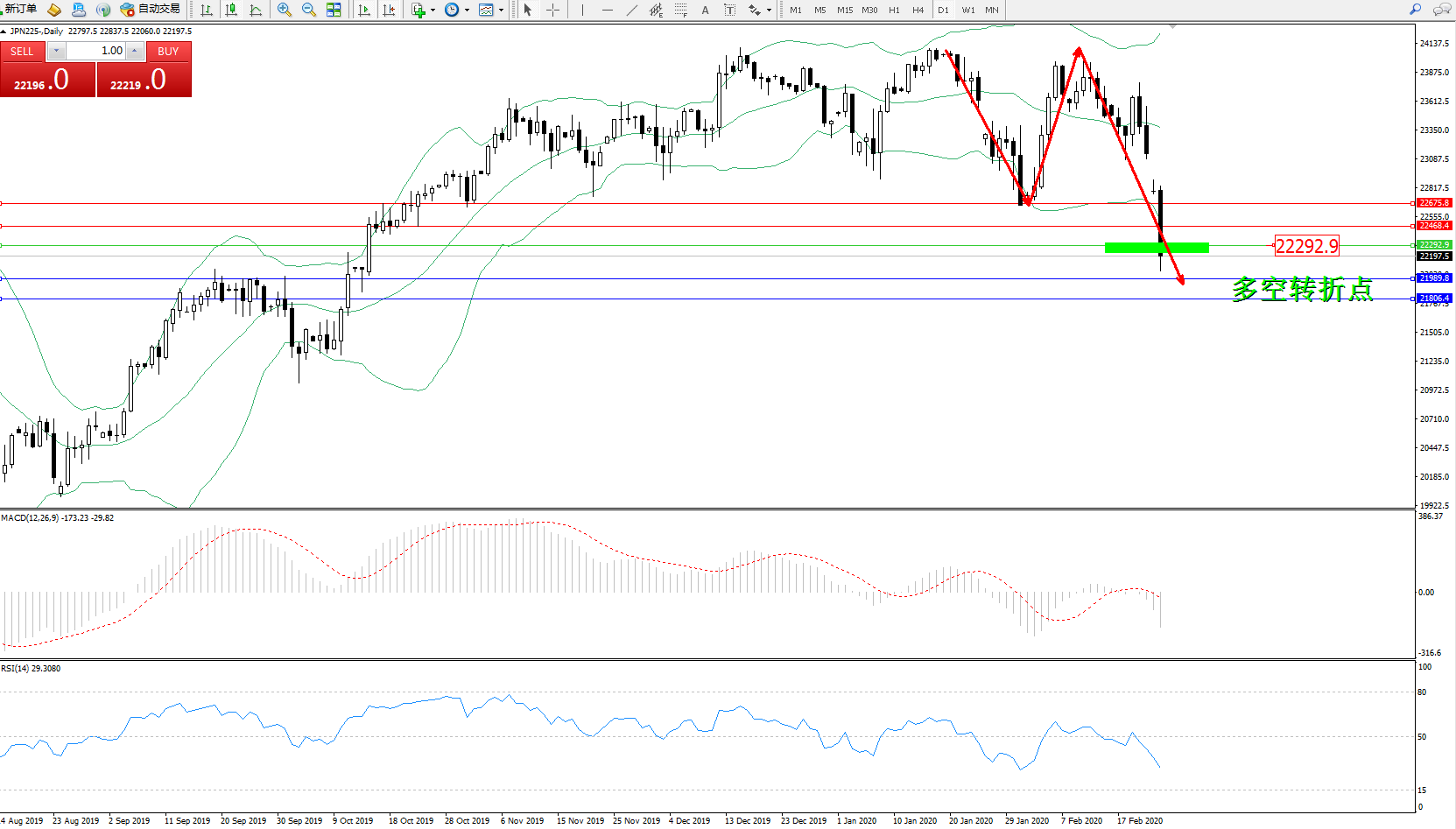 周一补休天皇诞辰日,休市一天。日经225指数2月21日(周五)收盘下跌91.65点,跌幅0.39%,报23387.50点。投资者更加担忧公共卫生安全问题在海外市场的蔓延。美国股市在本周开盘即大幅度下挫。中国以外的许多国家出现了大量新病例,加剧了传播的担忧,导致美国股指期货下跌。日本富士电视台等媒体于投资者更加担忧公共卫生安全问题在海外市场的蔓延。美国股市在本周开盘即大幅度下挫。中国以外的许多国家出现了大量新病例,加剧了传播的担忧,导致美国股指期货下跌。日本富士电视台等媒体于22日和23日,针对本国民众进行了一次民意调查。结果显示,安倍内阁的支持率为36.2%,不支持率为46.7%。不支持率时隔19个月,首次超过了支持率。
