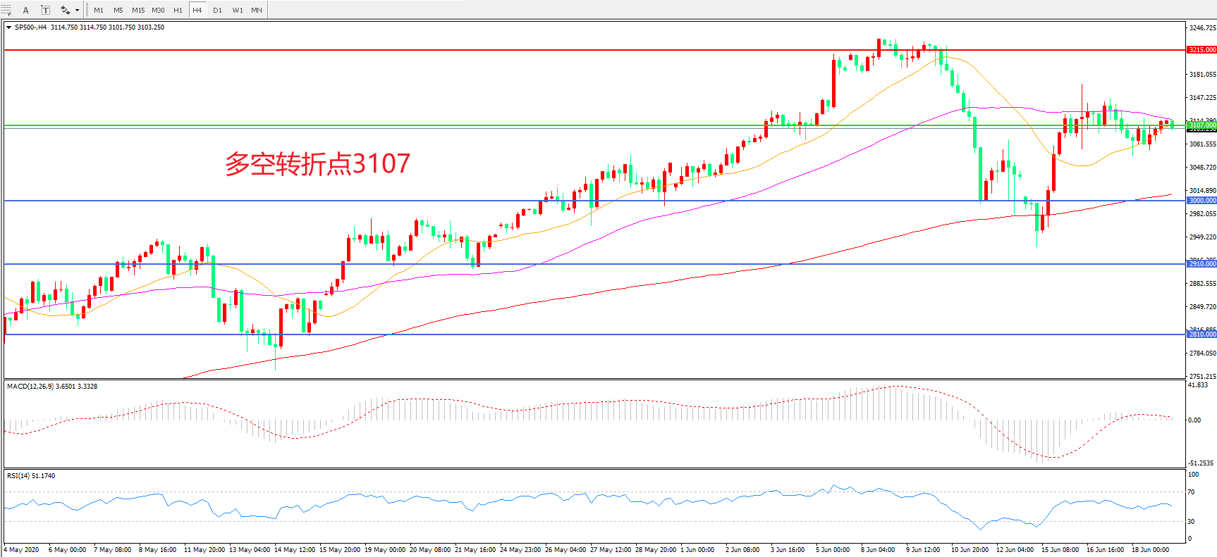 多空转折点:3107.00
