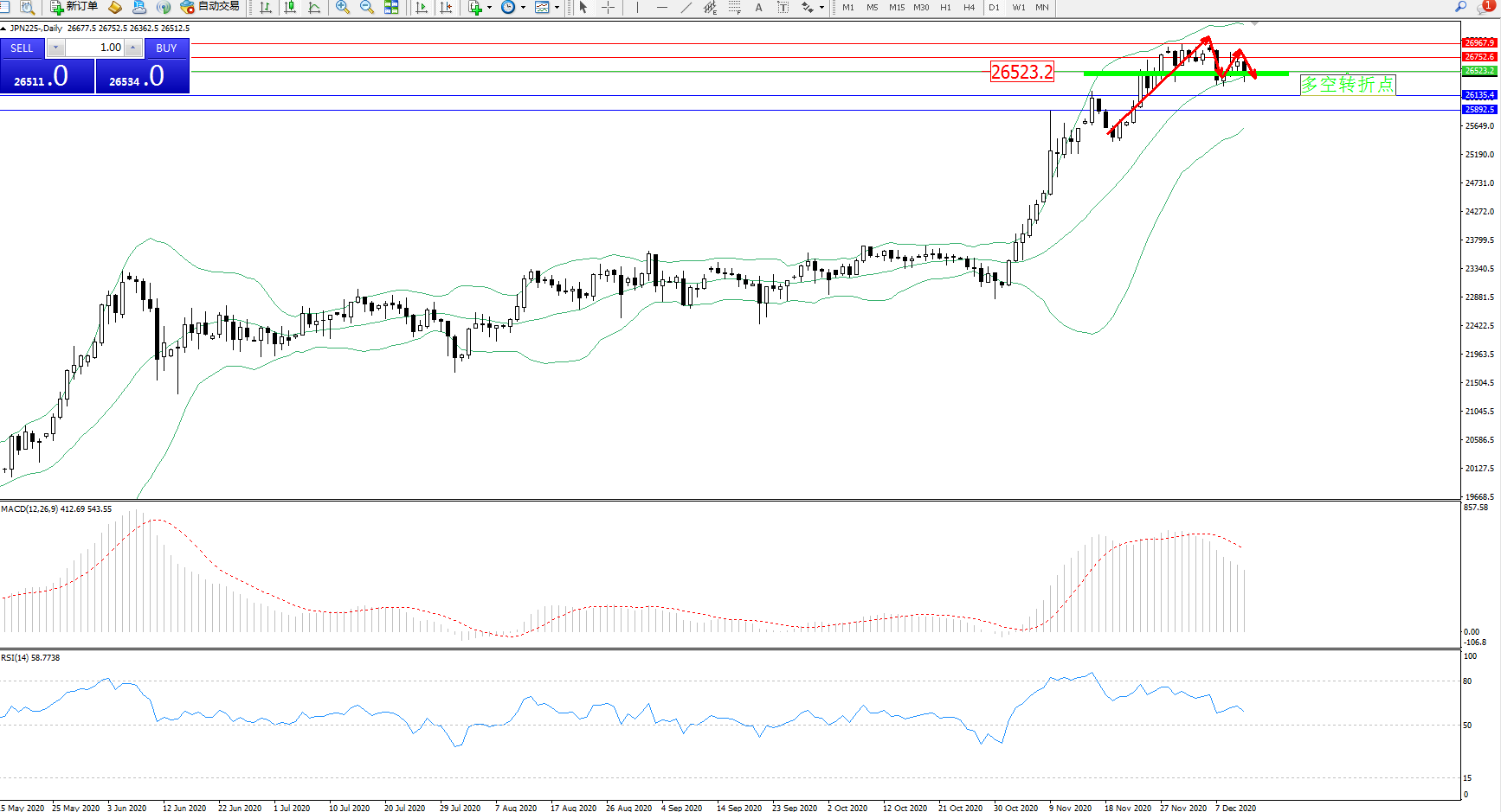 日经225指数12月11日(周五)收盘下跌107.24点,跌幅0.40%,报26649.00点。日本政府11日召开新型冠状病毒感染症对策小组会。鉴于北海道和大阪府等地新增感染人数上升势头不减,已对医疗供应体制造成严重影响,会上磋商了在相当于“第三阶段”(感染骤增)的地区,延长旅游支援项目“Go To Travel”的停止时间等。日本首相菅义伟:新冠疫情正在蔓延,情况严峻。没有考虑暂停“Go To Travel”计划。政府疫情应对专家小组认为,“Go To Travel”计划和新冠病情感染之间没有什么联系。会妥善处理疫情的现金分发。政府要承担缩短企业营业时间的责任。如果经济恶化,我们将无法保护人们的工作和生计。预计日本的手机费用最终将削减一半以上。