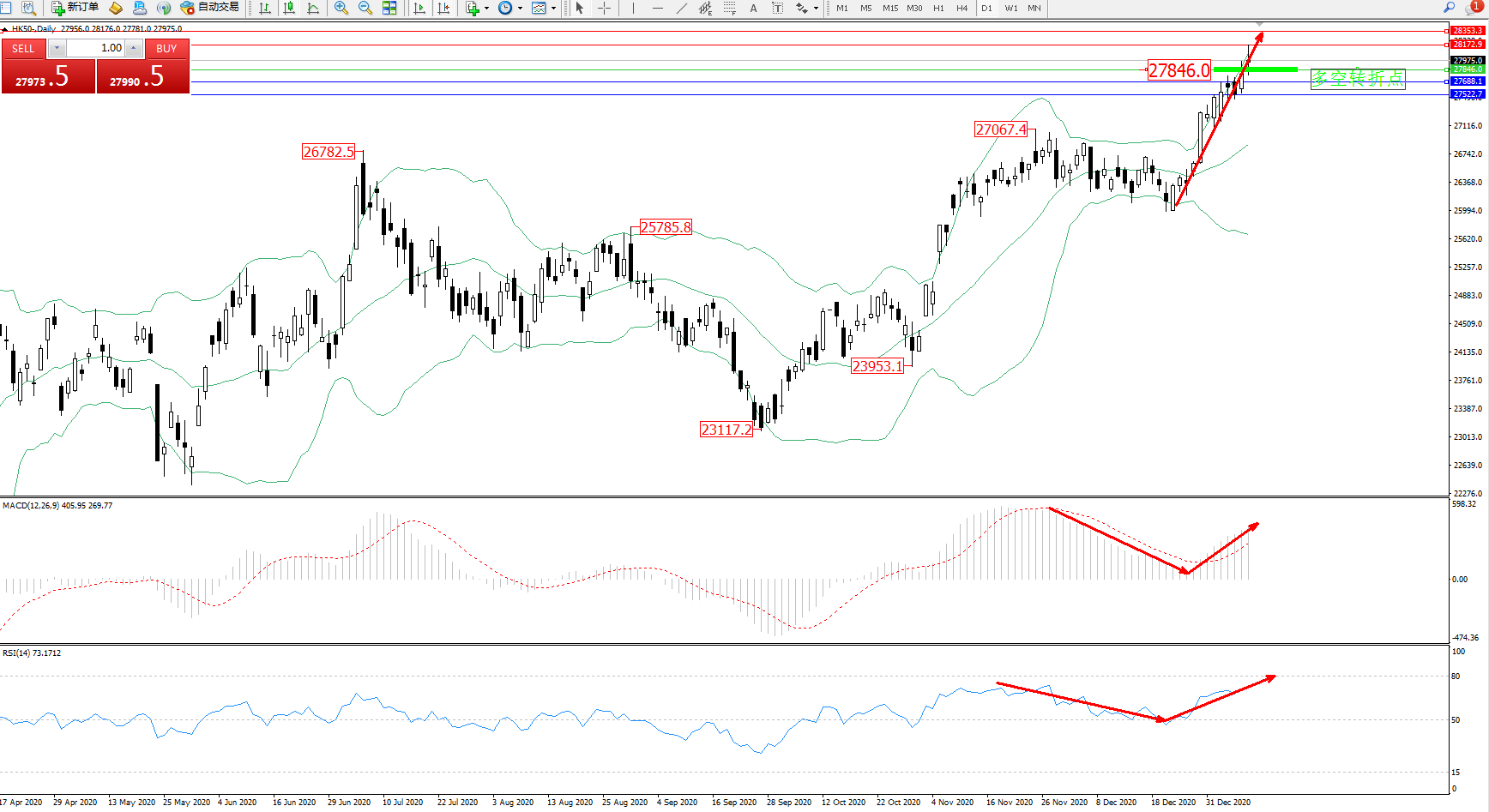 技术点评:多头动力延续布林带指标通道上轨附近节点持续震荡上扬态势良好,多头动力尚未有止步迹象,布林带指标呈张口走势后有缓慢收口迹象,关注高位上轨附近关键节点,MACD指标处于0轴线上方多头区域持续震荡向上移动中,RSI指标处于50均衡线上方多头区域高位平缓向上移动;