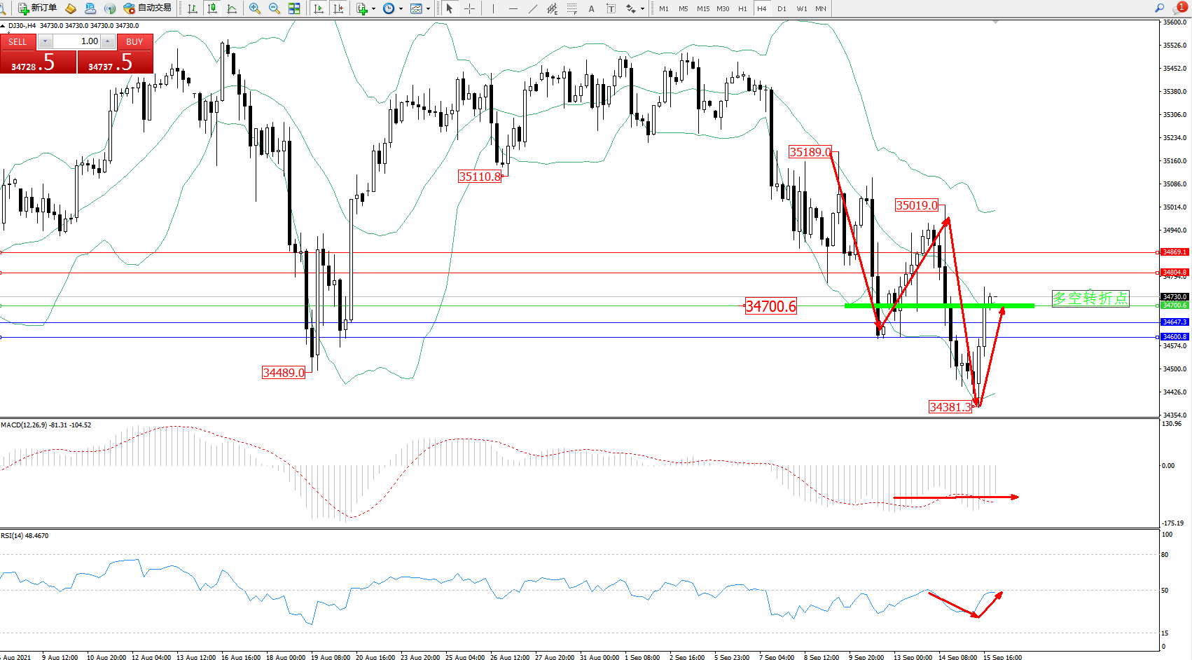 道琼斯指数9月15日(周三)收盘上涨236.16点,涨幅0.68%,报34813.73点;美股三大指数较昨日反弹,道指初步收涨,市场继续应对全球增长减速和央行退出刺激措施等相互矛盾的主题,政策制定者如何处理这一缺口将决定美元未来的价格走势,美联储应该继续审视通胀冲击,错误地支持增长,反过来这应该会限制美元的反弹,增加风险。