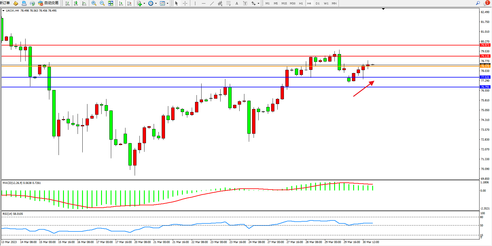 布油维持74.317附近震荡,俄罗斯原油减产幅度低于目标,缓解了供应担忧。消息人士表示,俄罗斯原油产量在3月份的前三周下降了约30万桶/日,低于此前设定的50万桶/日减产目标。