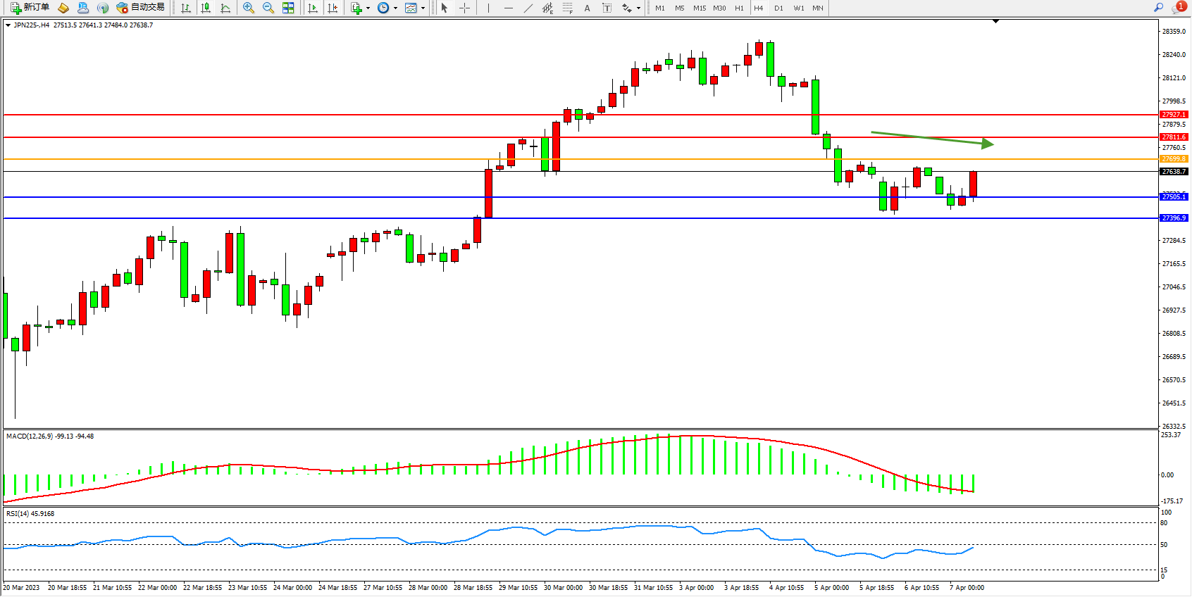日经225指数4月7日(周五)收盘上涨29.37点,涨幅0.11%,报27502.00点。日本央行行长黑田东彦:大规模宽松政策对经济和物价产生了积极作用。日本不再出现持续的物价下跌。很遗憾没有实现稳定的通胀。现在的情况是,工资更有可能上涨。