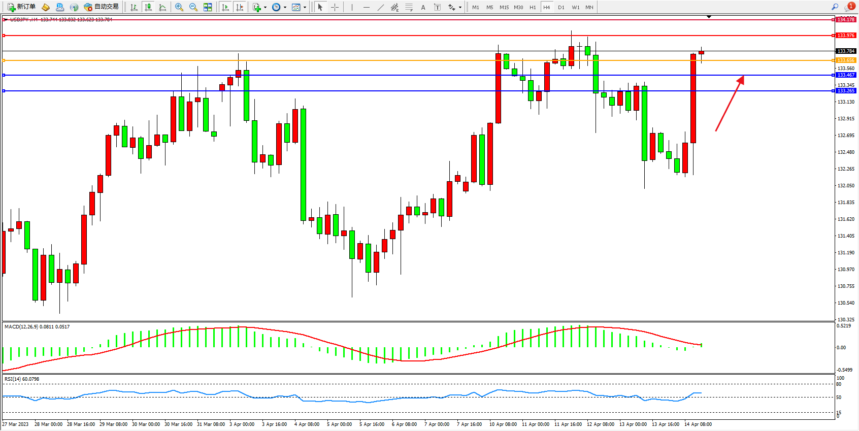 交易策略:133.656上方看涨,目标133.976 164.178