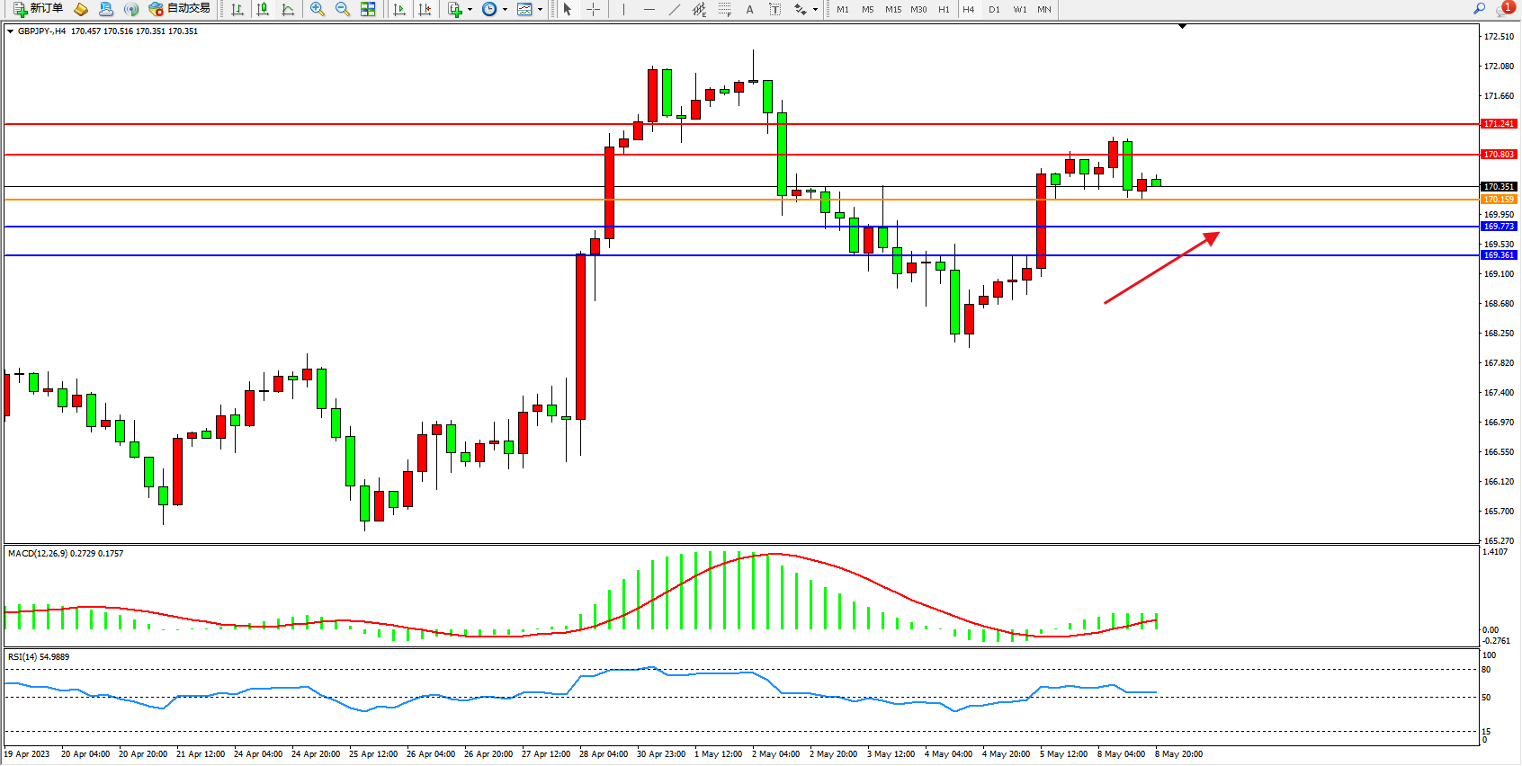 交易策略:170.159上方看涨,目标170.803 171.241