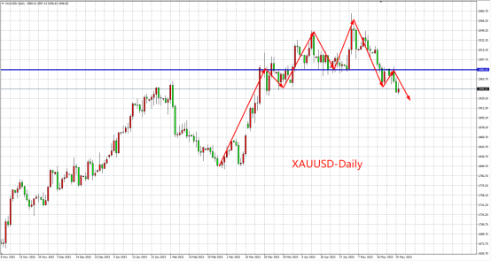 周二(5月23日)由于新一轮债务上限谈判缺乏进展,且数据表明美国制造业重陷萎缩,现货黄金先涨后跌,走出V型反弹,最终收涨0.29%。